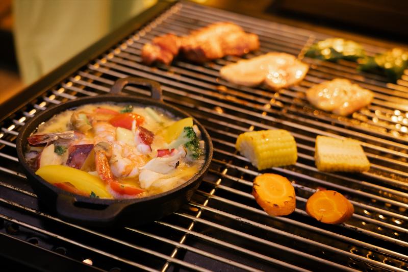 夕食BBQの大人メニューは牛豚鶏肉でボリューム満点