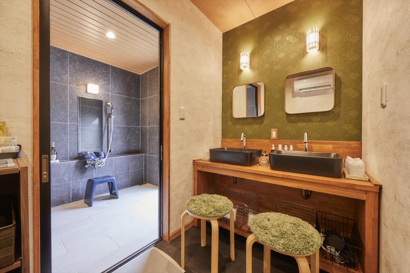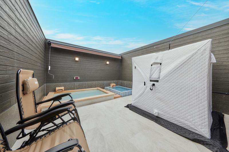 浴室にはプライベート露天風呂と水風呂・テントサウナを完備