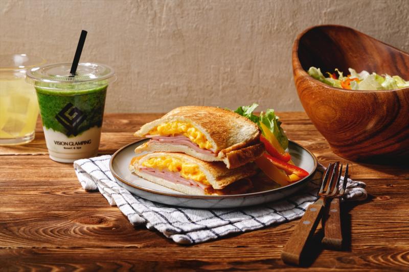 朝食にはホットサンドにスムージーなど